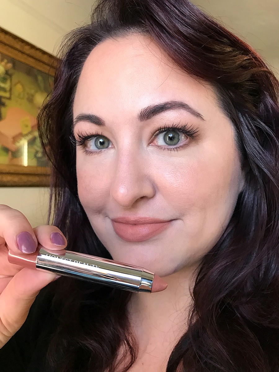 I finished the look with the Lip Crayon in Honey Kiss by Honest Beauty. It’s a beautiful shimmery, peachy pink shade that is easy to apply and easy to wear. It’s definitely not long-wearing or drying. It’s the perfect lip color for an easy spring or summer makeup look.