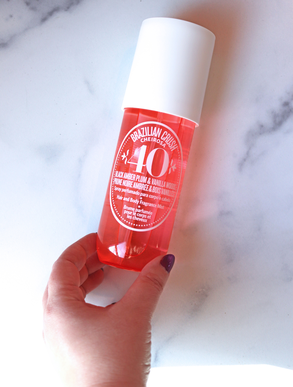 If you like the scent of Bum Bum Cream, you’ll probably love the Sol de Janeiro Brazilian Crush Cheirosa Hair and Body Mists. I like gourmand scents but if they are too sweet or if there’s a vanilla scent that isn’t balanced with something darker, I usually don’t like it. I wasn’t a fan of Sol de Janeiro’s original Bum Bum body cream’s scent – it smelled wonderful in the jar, but weird when it mixed with my skin. I took a chance on the Black Amber Plum and Vanilla Woods 40 hair and body mist, and I’m glad I did. To me, it’s still on the girly, sweet, fruity side, but it has the amber to keep it from being a teenybopper fragrance. It’s still pretty youthful, and I tend to like more mature scents, so it’s not an everyday thing for me. But if you’re younger, or you just prefer girly scents, you’ll love this one.