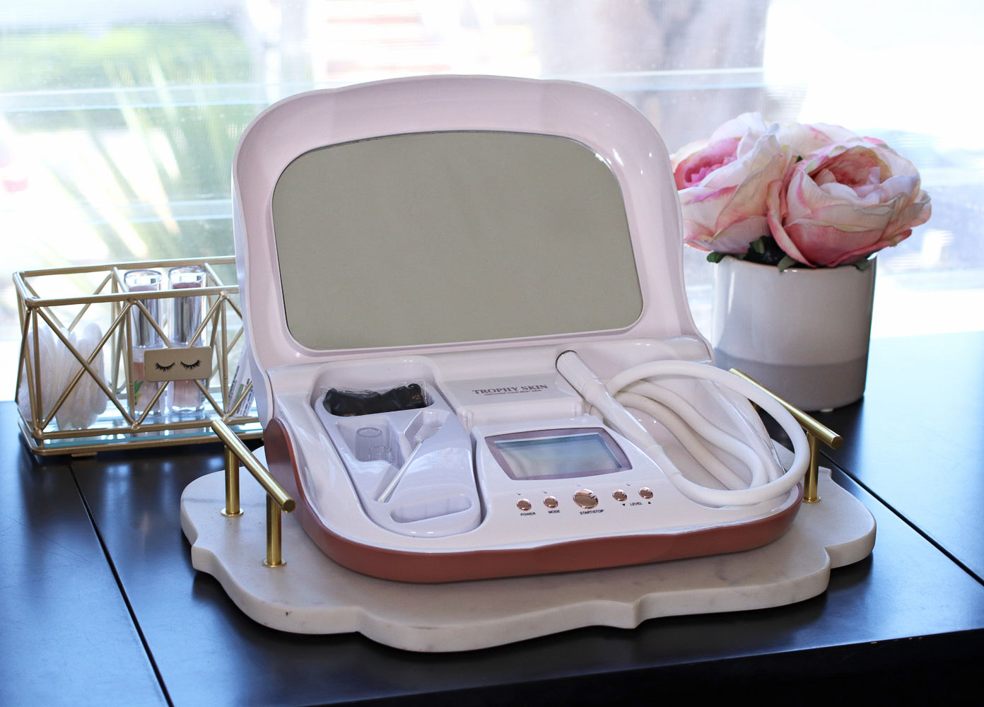 I recently got a Trophy Skin MicrodermMD at-home microdermabrasion machine (Trophy Skin sent it to me to try out). It retails for $299, and if that’s too rich for your blood, there is also a Mini Microderm for $99, as well as a mid-range version for $199.