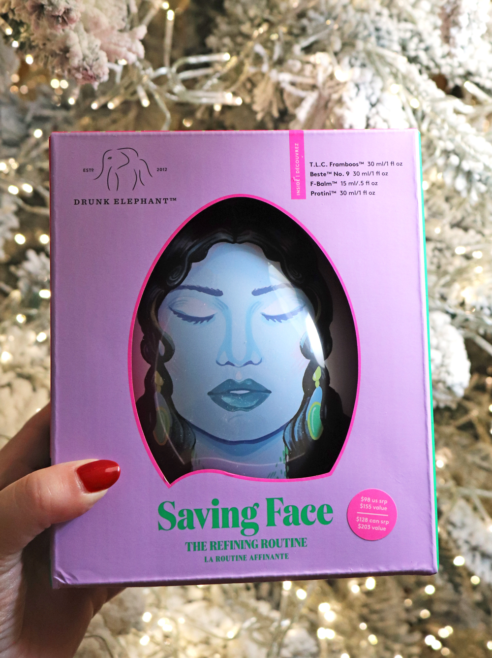 The Trunk 5.0 is obviously a really nice gift, but also a bit pricy. If you’re looking for a slightly more affordable way to give the gift of luxury skincare with Drunk Elephant, check out the Saving Face Resurfacing Skincare Kit – The PM Routine ($155 value for $98). This cute little egg-shaped box comes with a full-sized T.L.C. Framboos Glycolic Resurfacing Night Serum, and travel-sized Beste No. 9 Jelly Cleanser, Protini Polypeptide Moisturizer, and F-Balm Electrolyte Waterfacial Mask.