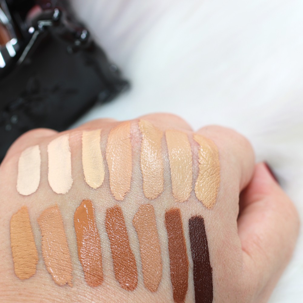 Here are the All Nighter Concealer swatches (L-R): Fair Warm, Fair Neutral, Light Warm, Light Neutral, Med Light Warm, Med Light Neutral, Med Neutral, Med Dark Warm, Med Dark Neutral, Dark Golden, Dark Warm, Dark Neutral, Deep Neutral, Extra Deep Neutral.