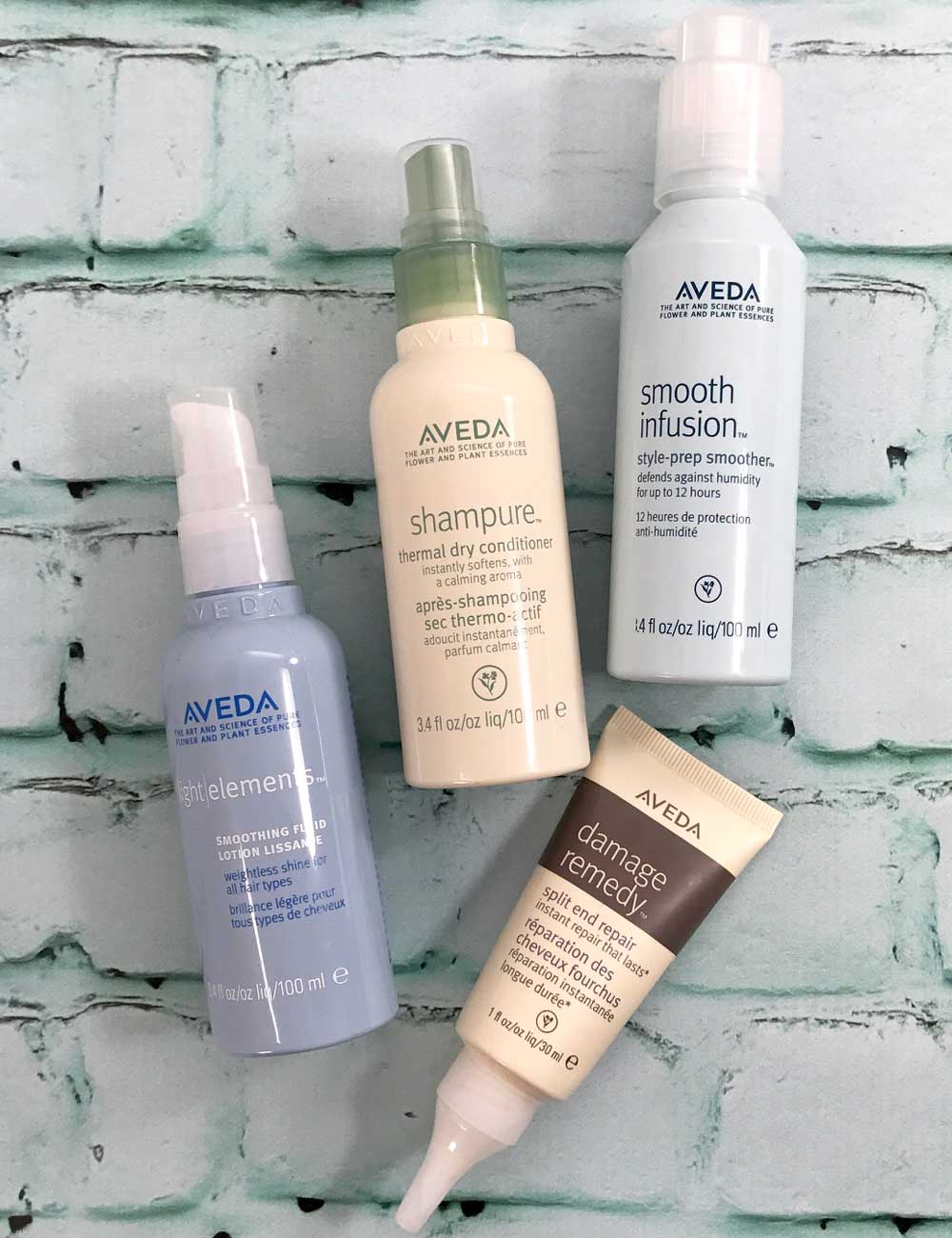 An Aveda product that is quickly becoming a major favorite, is the Shampure Thermal Dry Conditioner. When they sent me this, I was like “okay, I know what a dry shampoo is, but what the heck is a dry conditioner?” I realized it’s basically a mist that I can spray on my hair when it’s looking a little dry and sad. It’s a super light mist that not only smells AMAZING (hair perfume anyone?), but it also helps to add a lightweight oil blend to fight frizz and those dry ends that don’t want to curl up because they are so thirsty. I want to reiterate that it’s a SUPER FINE (non-aerosol) mist that really won’t weigh your hair down. You can use it before heat styling too. And finally, my other must-not-ever-run-out-of-this product is the Light Elements Smoothing Fluid. It’s a lightweight serum that I use after blowdrying, or anytime I need to tame frizz and broken hairs. I use about one pump, rub it between my hands, and smooth it into my hair – starting at the roots. It doesn’t weigh my hair down at all. Holy grail y’all.